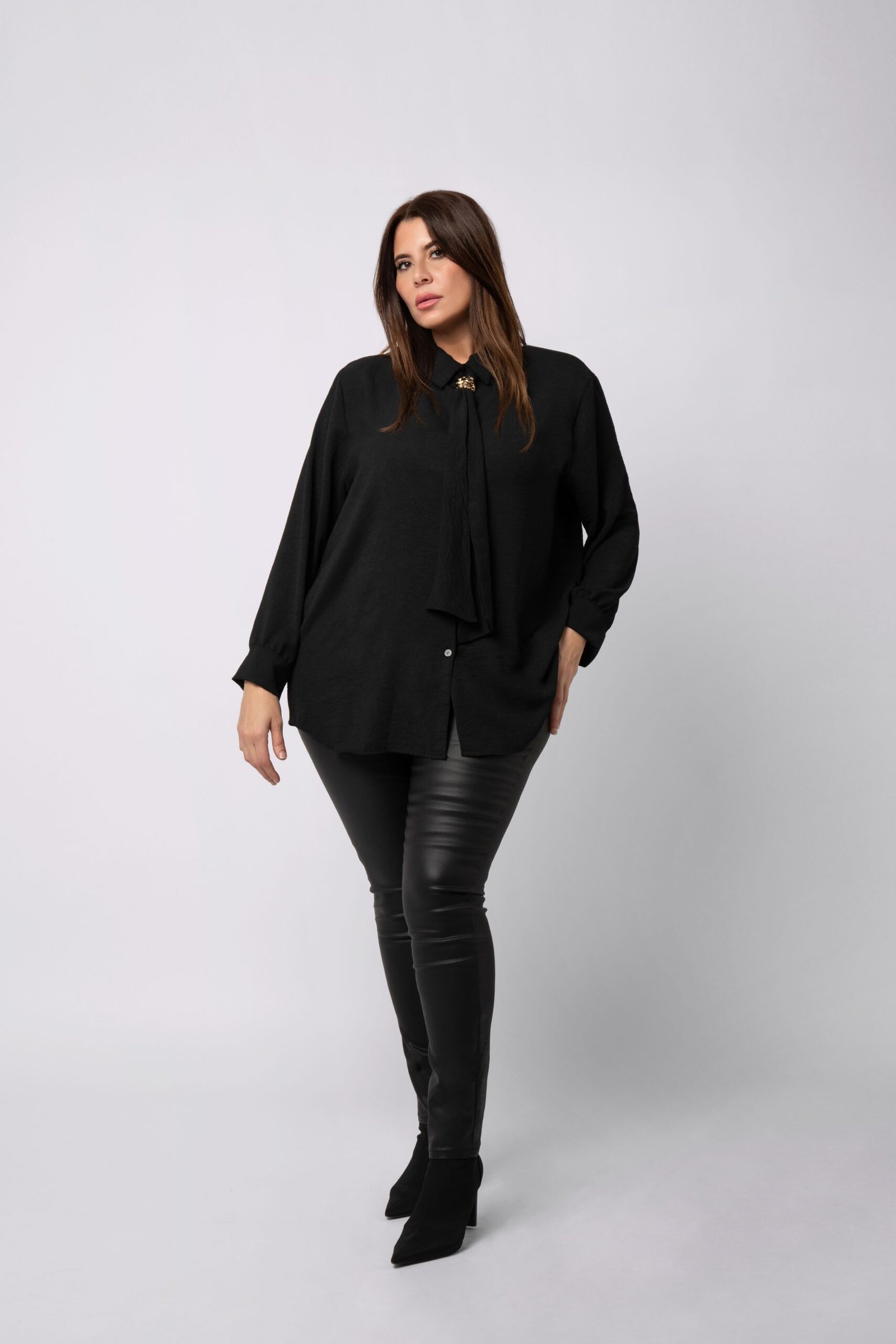 Conçue comme un vêtement grande taille de caractère, cette blouse s’inscrit dans une garde-robe exigeante, où chaque pièce est choisie pour son style et son attitude.