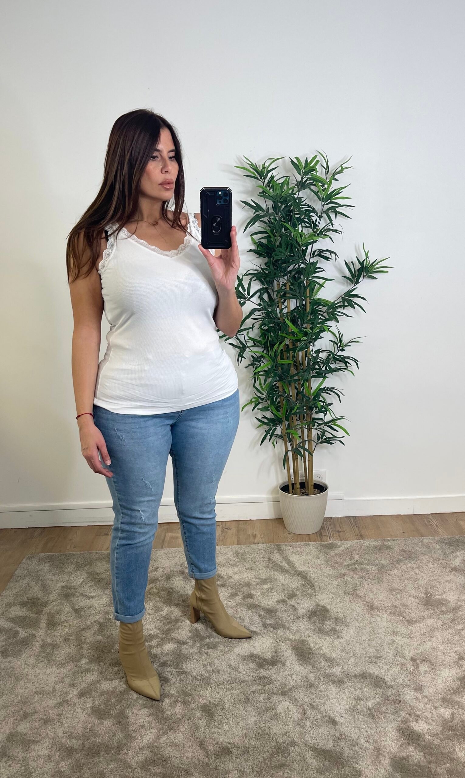 Il offre un toucher doux et une sensation confortable sur la peau, idéale pour une utilisation quotidienne. Sa couleur blanche en fait une pièce polyvalente, facile à associer et indispensable dans toute garde-robe. Le débardeur Daniella se porte aussi bien sous une chemise, un blazer ou un gilet, qu’avec un jean, un pantalon ou une jupe, pour un look simple, efficace et toujours élégant.