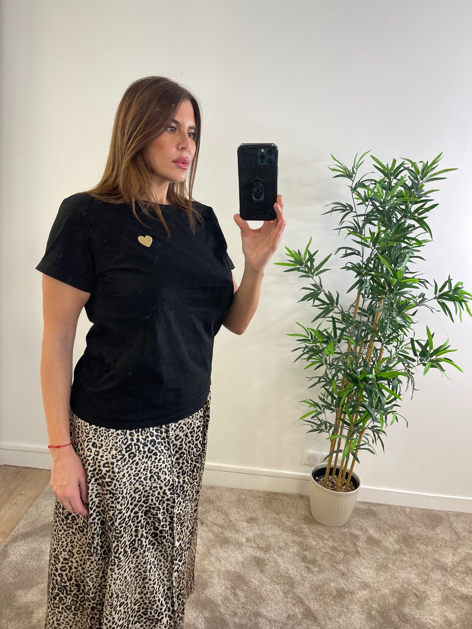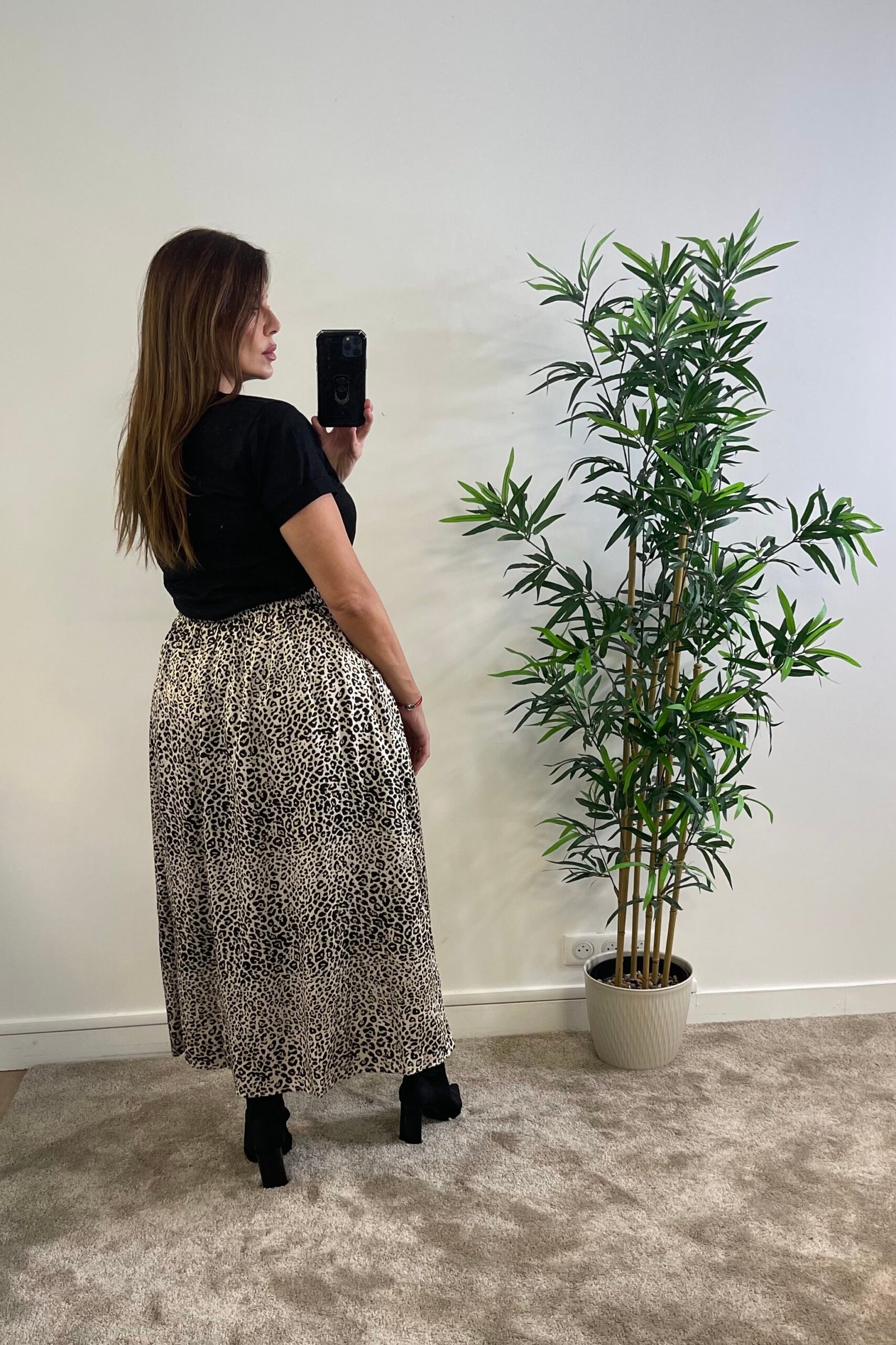 Que ce soit pour une sortie en ville ou une soirée, cette jupe longue léopard vous garantira une silhouette impeccable et un style affirmé. Confectionnée dans un tissu fluide et léger, l’imprimé léopard audacieux apporte une touche de caractère à cette pièce intemporelle, idéale pour toutes les occasions.