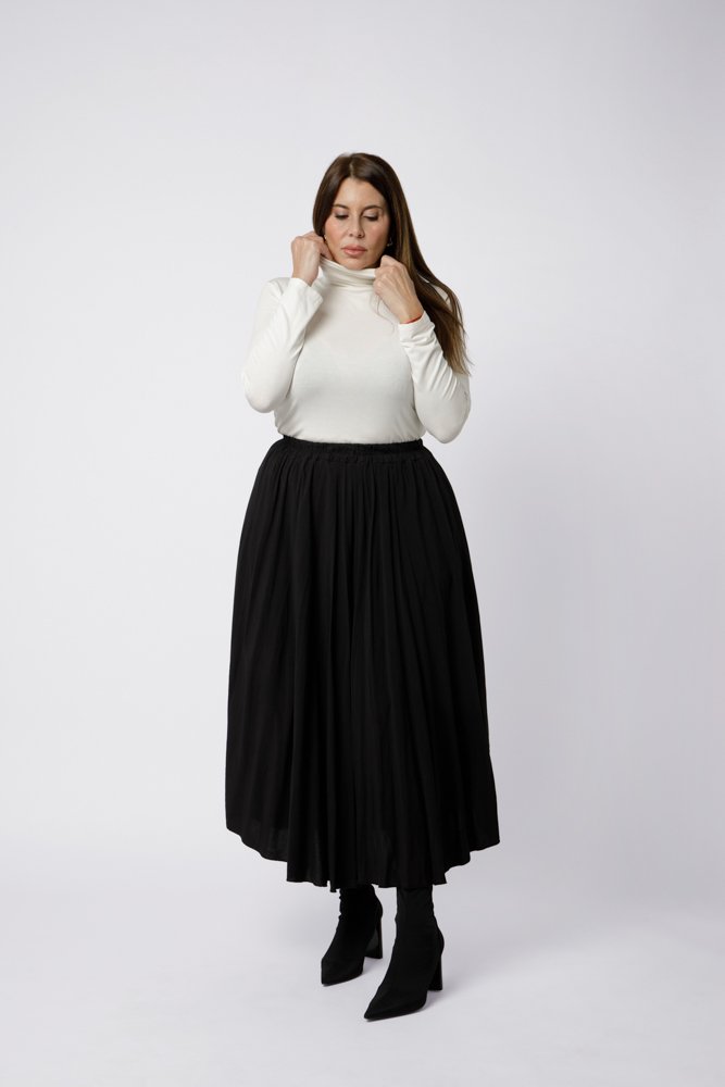 La jupe Eva est une pièce multi-saisons incontournable du dressing féminin. Elle s’adapte aux températures comme aux envies : en période plus fraîche, il suffit de l’associer à un collant, et dès l’arrivée des beaux jours, elle se porte naturellement jambes nues. Sa taille élastique permet de jouer avec la hauteur de la jupe pour un rendu sur-mesure, que l’on préfère la porter taille haute ou plus basse selon le style recherché. Sa matière légère et fluide offre un tombé harmonieux qui accompagne les mouvements sans marquer le corps, pour un confort optimal tout au long de la journée.