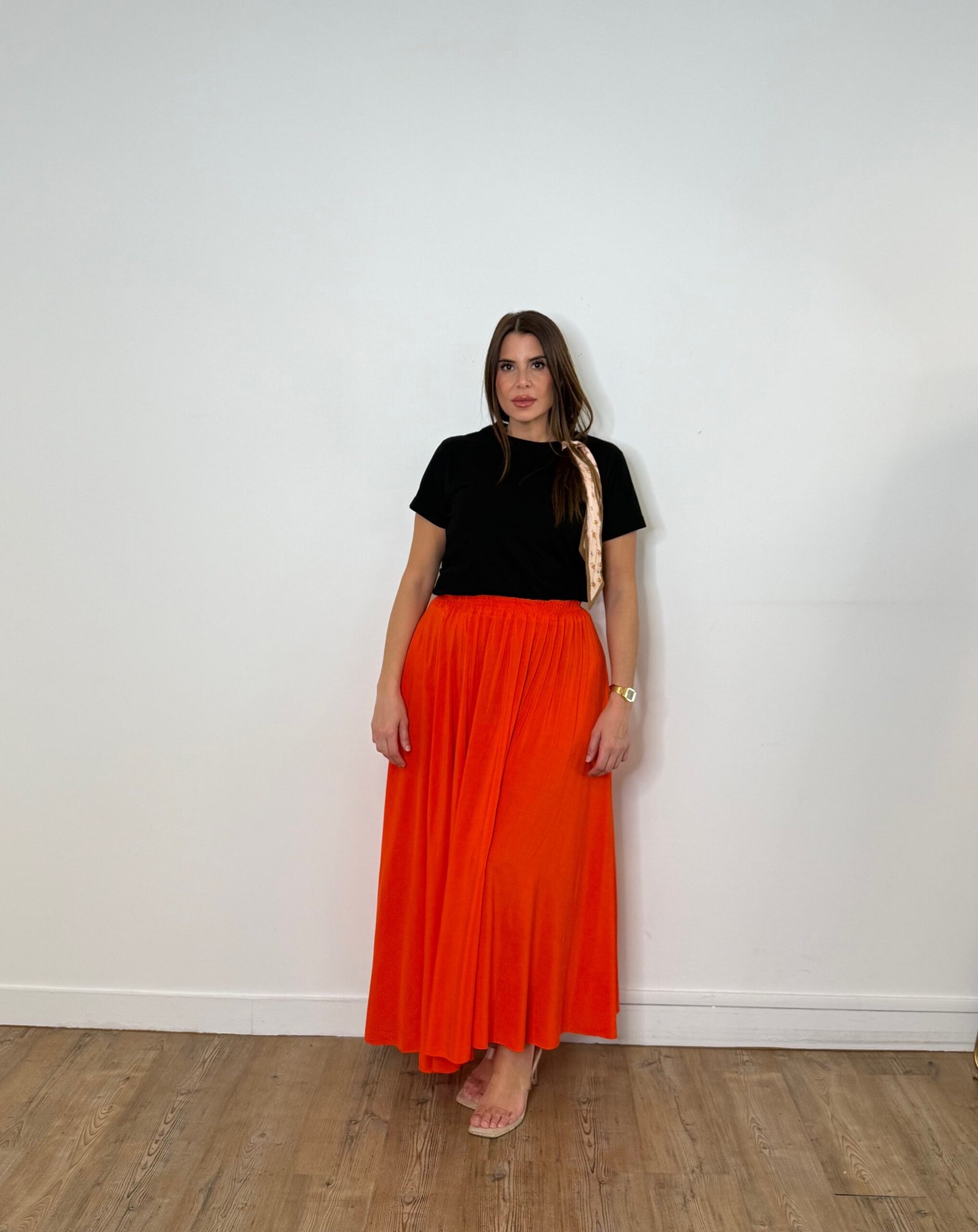 Très simple à associer, la jupe Eva se porte avec un t-shirt, un débardeur, un pull ou un gilet, et fonctionne aussi bien sous un blazer qu’avec une veste en jean. Elle s’adapte à toutes les chaussures : sandales, baskets, bottines ou bottes hautes, pour créer des looks variés en toute saison.