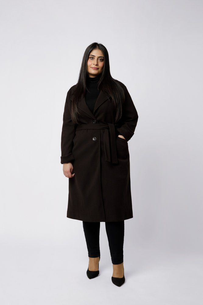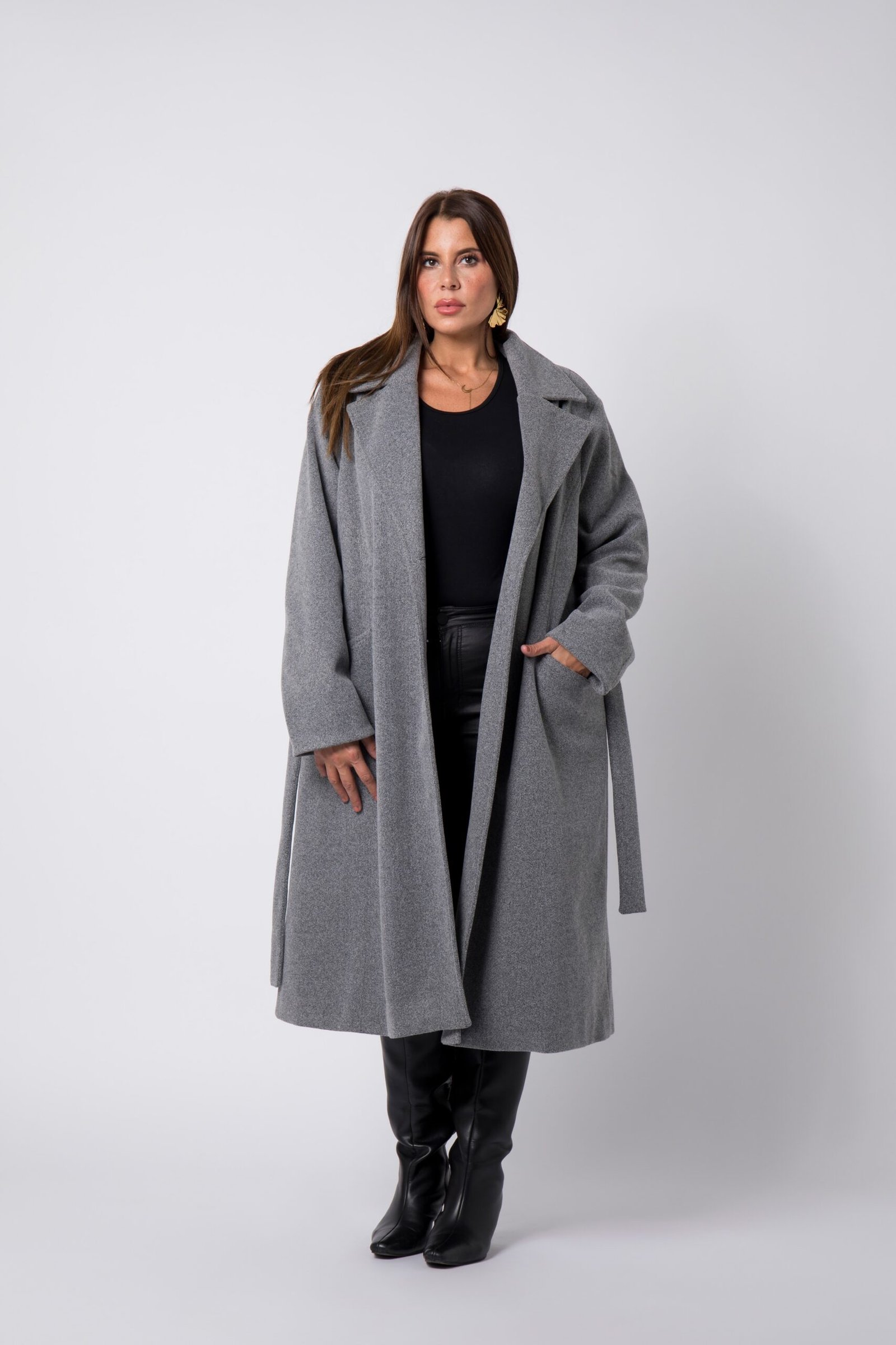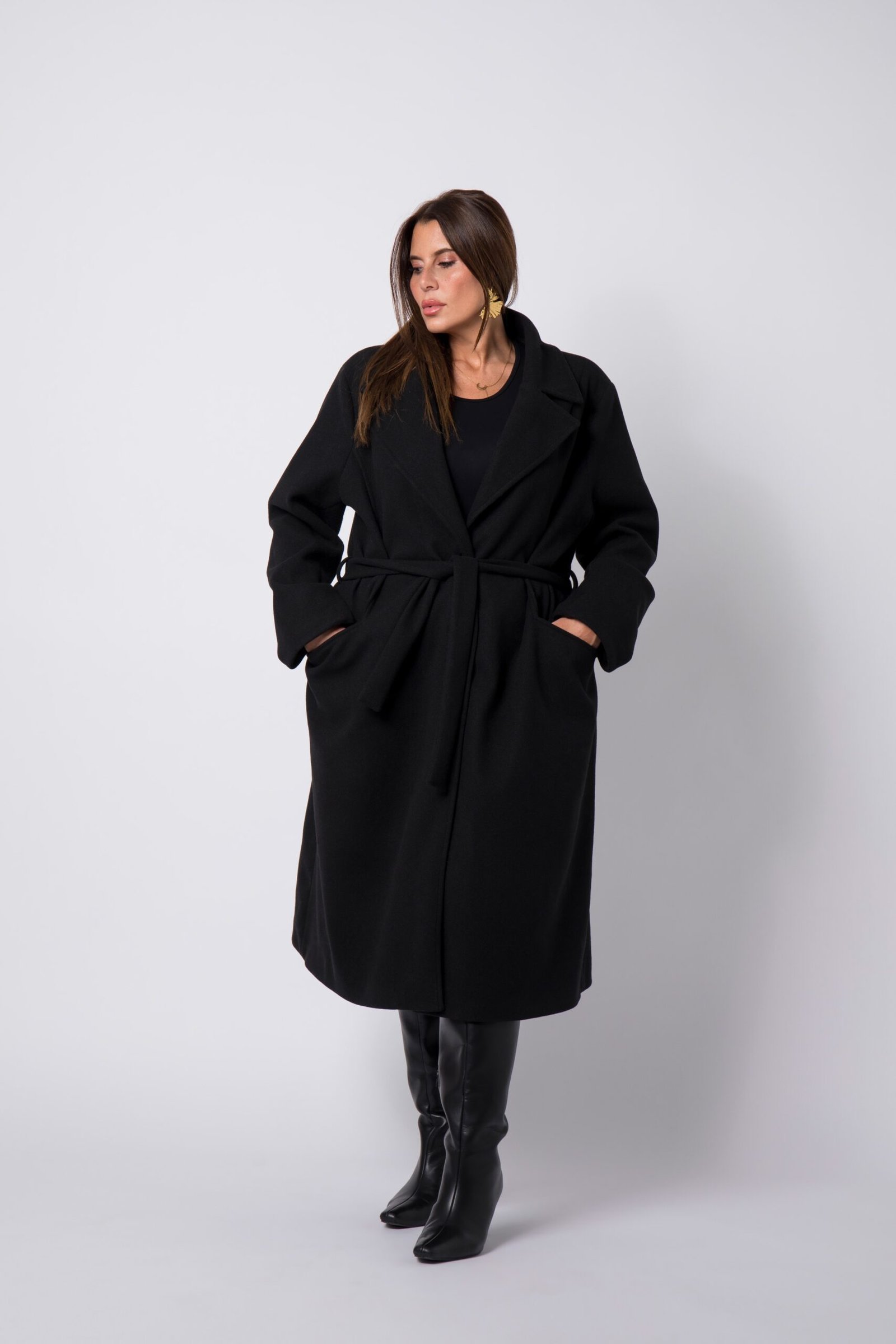 Le Manteau avec ceinture Paloma allie élégance et confort, pensé pour sublimer les silhouettes curvy et les morphologies grandes tailles. Sa coupe longue et fluide, inspirée de l’effet peignoir, crée un tombé élégant qui suit naturellement les courbes. Il possède deux boutons sur le devant et une ceinture, permettant à chacune de le porter selon son style : fermé avec la ceinture attachée à l’arrière, ou cintré sur le côté pour structurer la taille.