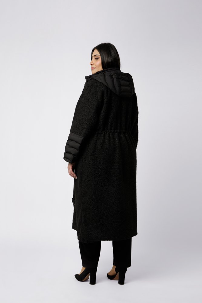 Son jeu de matières apporte du relief et du caractère à la pièce.  Doté d’une capuche amovible, il s’adapte facilement aux variations de style et de météo.  Facile à associer, le manteau Mathilde se porte avec un pantalon, un jean ou un legging, accompagné de bottines ou de baskets pour un look à la fois pratique et élégant.