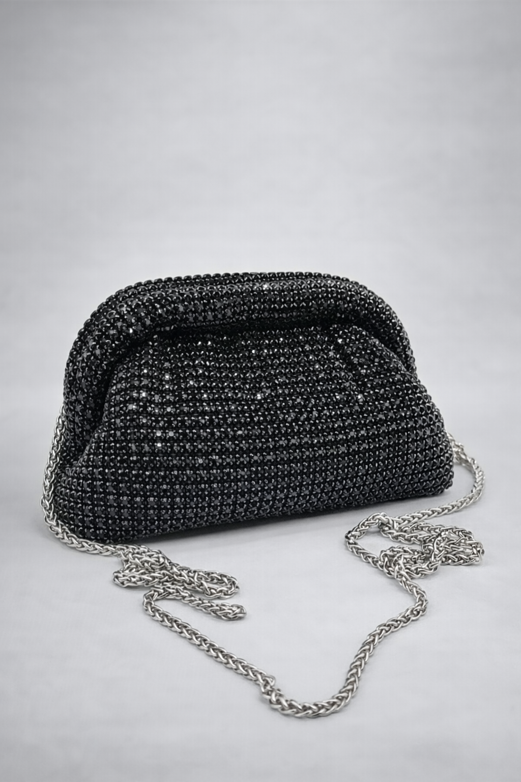 La pochette strass noire Pandora incarne l’élégance et le raffinement. Entièrement recouverte de strass noirs, elle capte la lumière avec subtilité et apporte une touche sophistiquée à toutes vos tenues de soirée. Son design structuré et son format compact permettent d’emporter l’essentiel tout en conservant une allure chic. Dotée d’une chaîne argentée, Pandora peut se porter à l’épaule ou en bandoulière, selon vos envies et le style recherché.