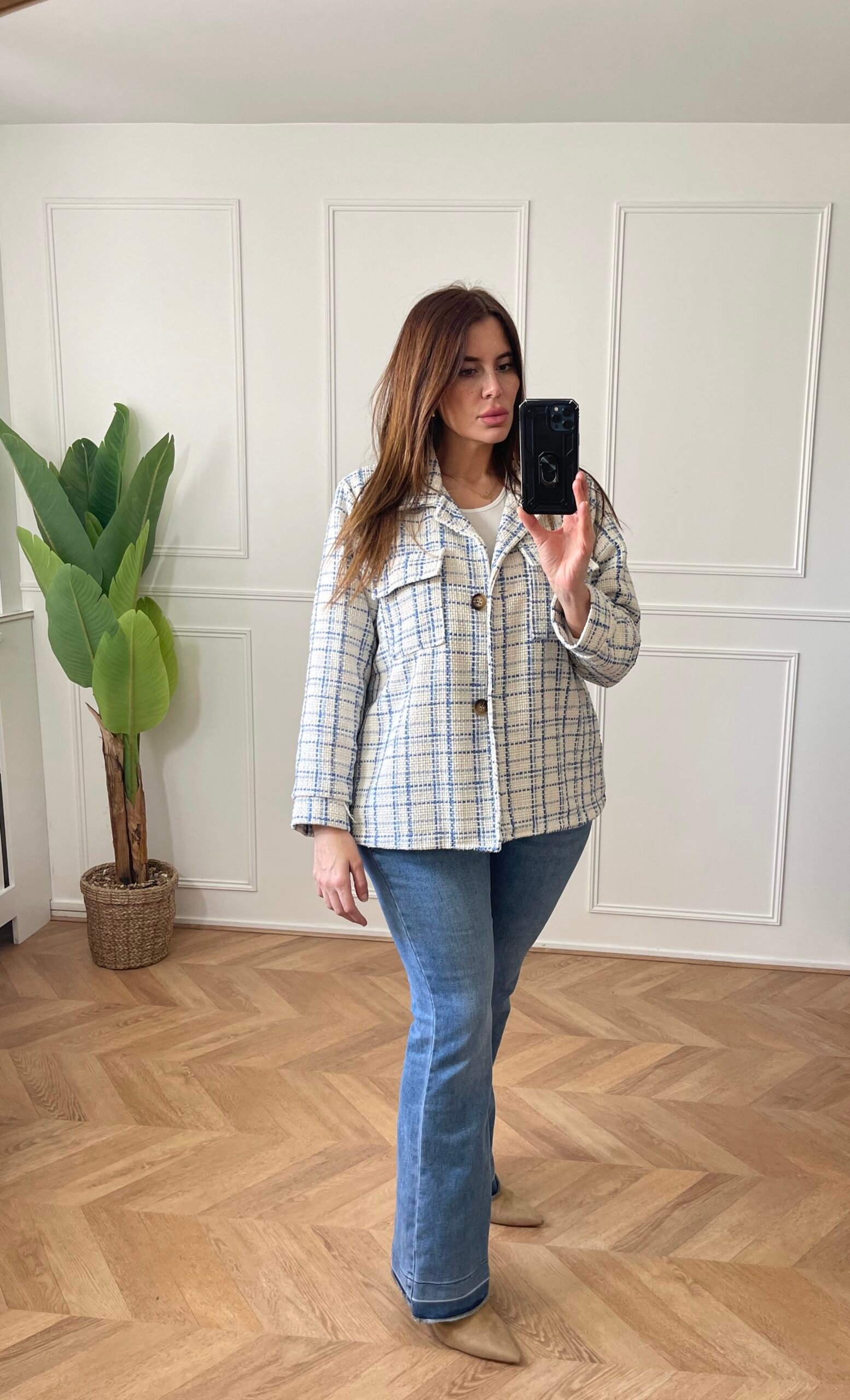 La veste Apoline à effet tweed associe féminité et élégance. Agréable à porter, cette veste femme est pensée pour donner de l’élégance au quotidien… et marquer votre style avec raffinement et personnalité. Ses 2 poches à rabat boutonné lui apportent une nouvelle modernité.
